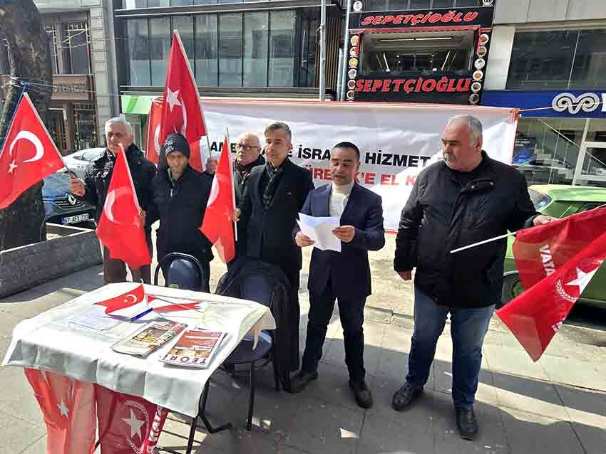 Zonguldak’ta Vatan Partisi Merkez İlçe Teşkilatı tarafından Vergi Dairesi önünde basın açıklaması düzenlendi. Açıklamayı Merkez İlçe Başkanı Hasan Demirkesen yaptı. Demirkesen, yaptıkları açıklamada bölgedeki gelişmelere dikkat çekerek, “Vatan Partisi olarak daha ilk günden itibaren ‘İran’a saldırı Türkiye’ye saldırıdır’ dedik. Amerika ve İsrail’e hizmet eden İncirlik ve Kürecik üslerinin Türk Silahlı Kuvvetleri’nin tam kontrolüne alınması gerektiğini her platformda dile getirdik” ifadelerini kullandı.