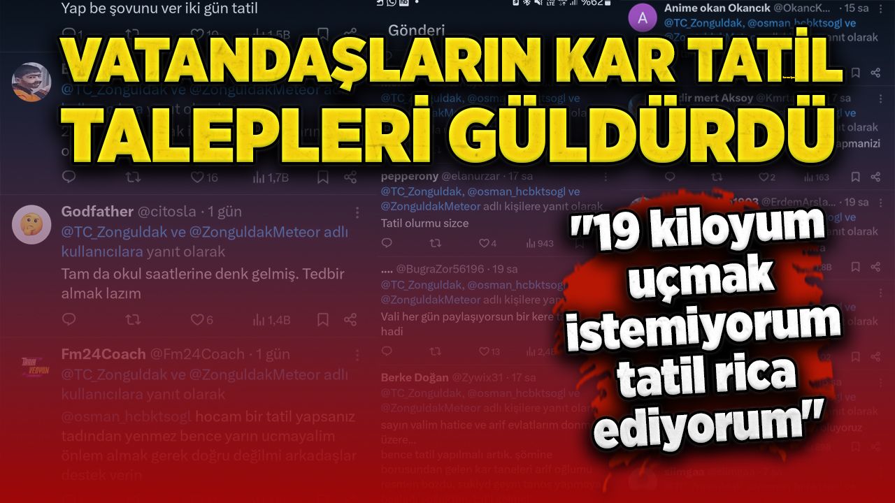 Zonguldak'ta dün gece saatlerinde etkili olan kar yağışı sonrası öğrenciler ve vatandaşlar valilik sosyal medya hesabını mesaj yağmuruna tuttu. Yapılan tatil talebi yorumları ise güldürdü.