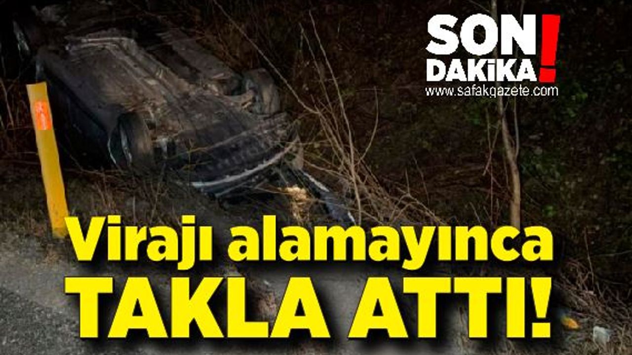 Düzce’de virajı alamayıp takla atan otomobil kanala uçtu. Kazada sürücü burnu bile kanamadan araçtan çıktı.