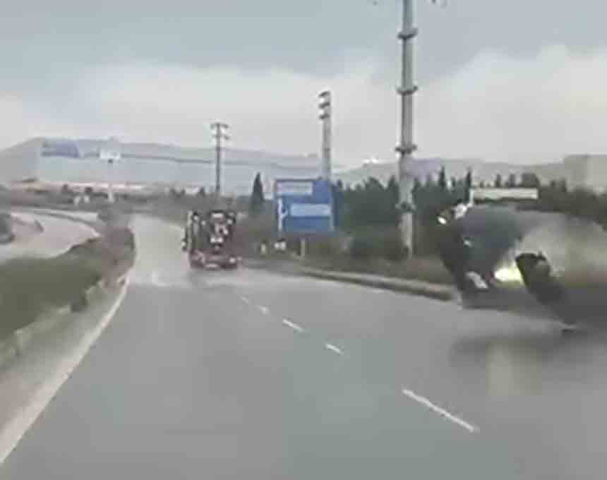 Olay, aynı istikamette seyreden başka bir aracın içerisindeki cep telefonu kamerasına saniye saniye yansıdı. Kazada can kaybı veya yaralanma bilgisi paylaşılmazken, polis ve trafik ekiplerinin olayla ilgili incelemesi sürüyor.