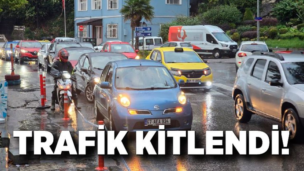 Zonguldak kent merkezinde akşam saatlerinde etkili olan yağmur, iş çıkışındaki yoğun trafikle birleşince ulaşım durma noktasına geldi.