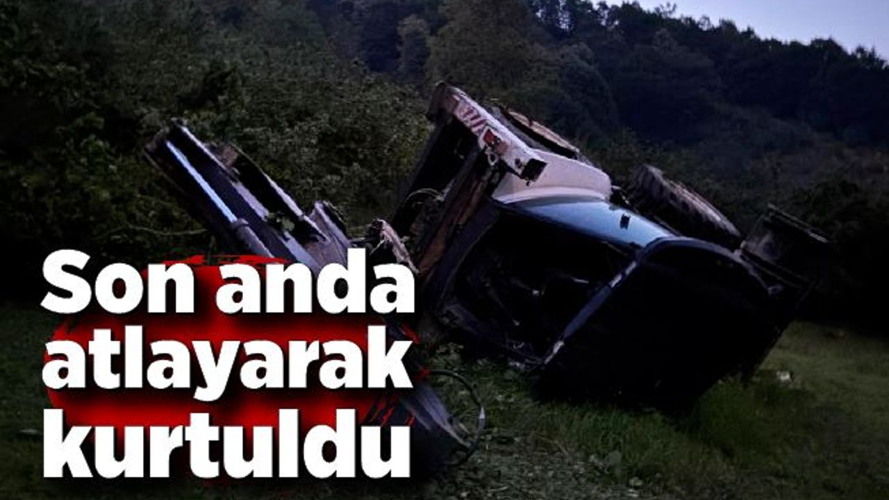 Yamaçtan yuvarlanan iş makinesinden atlayarak kurtuldu