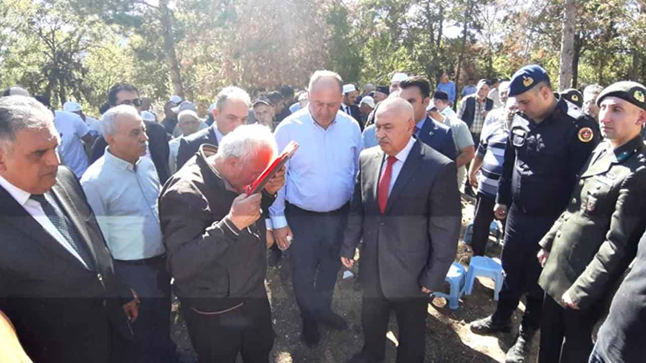 Törenin sonunda Vali Yardımcısı Fatih Damatlar, tabuta sarılı Türk bayrağını çiftin oğlu Adem Karaman'a teslim etti. Damatlar ve beraberindekiler, okunan duaların ardından aileye taziyede bulundu.