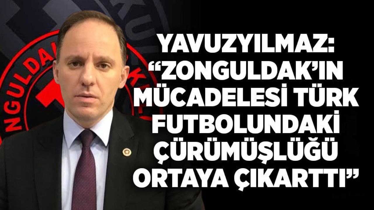 Yavuzyılmaz, TFF Başkanının bu açıklamasının, Ankaraspor–Nazilli Belediyespor maçındaki şike soruşturmasıyla aynı döneme denk geldiğine dikkat çekerek, “Zonguldakspor’un küme düşmesine sebep olan şikeli maç ve ardından Zonguldak’ın hak mücadelesi Türk futbolundaki çürümüşlüğü açığa çıkarmıştır” dedi.