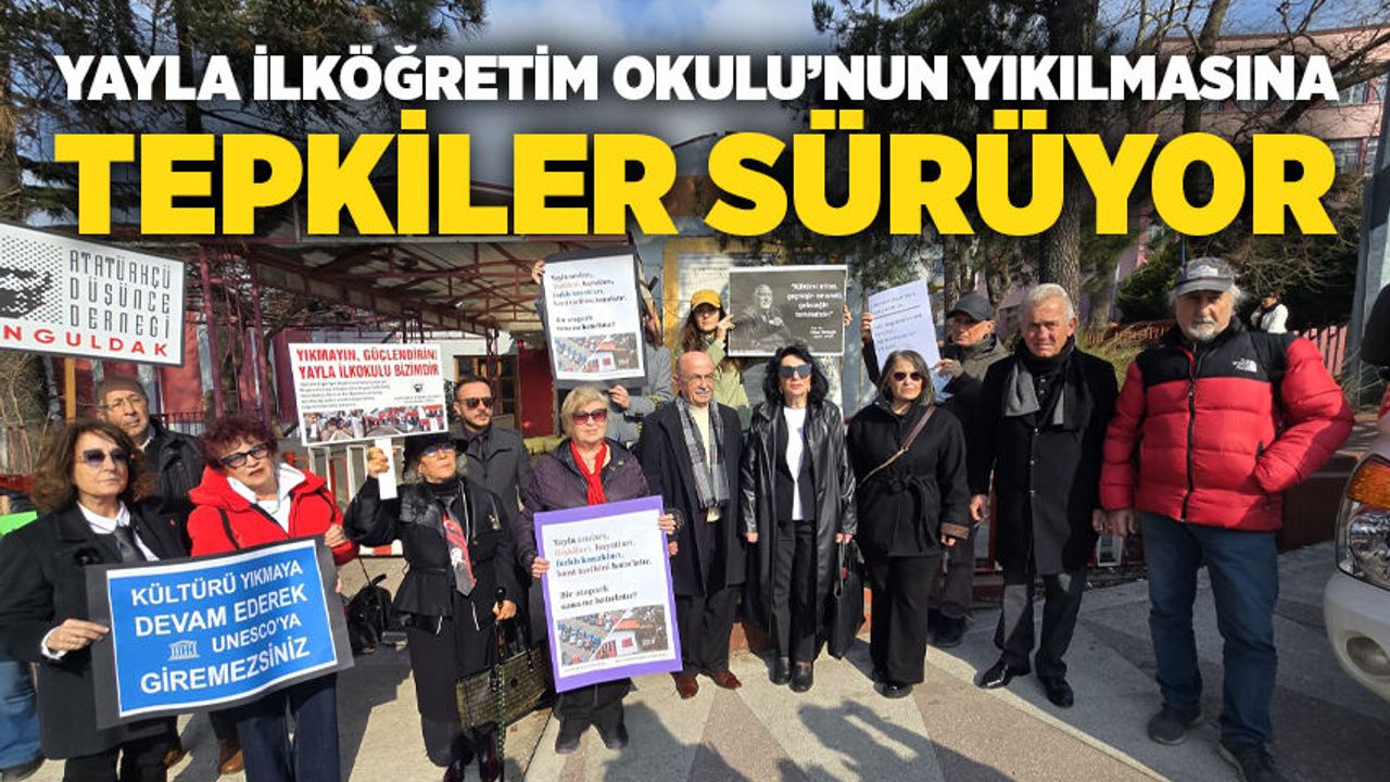 Zonguldak’ta Yayla İlköğretim Okulu’nun yıkılmasına yönelik tepkiler devam ediyor. Kent Konseyi, Mimarlar Odası, Maden Mühendisleri Odası, Cumhuriyet Halk Partisi ve Atatürkçü Düşünce Derneği üyeleri okul önünde toplanarak yıkım kararına karşı çıktı.