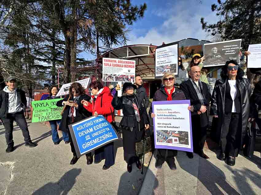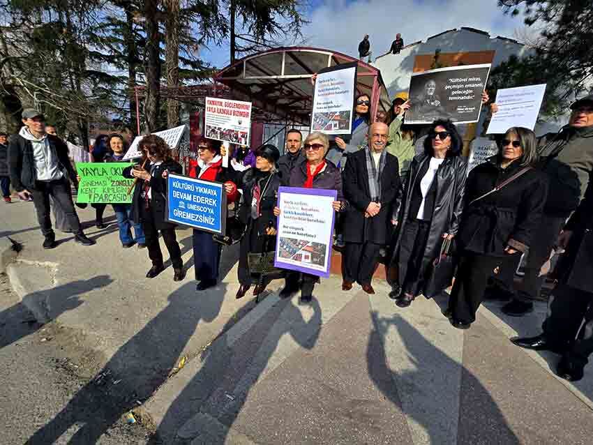 Bakioğlu açıklamasında, “Henüz çok geç olmadan sesimizi duyurmak istiyoruz. Belki karar vericiler bir kez daha düşünür ve bu kent için önemli değerlere sahip çıkmaya karar verirler. Buradaki simge binaya olan sevgimizi ve verdiğimiz değeri göstermek için toplandık” ifadelerini kullandı.