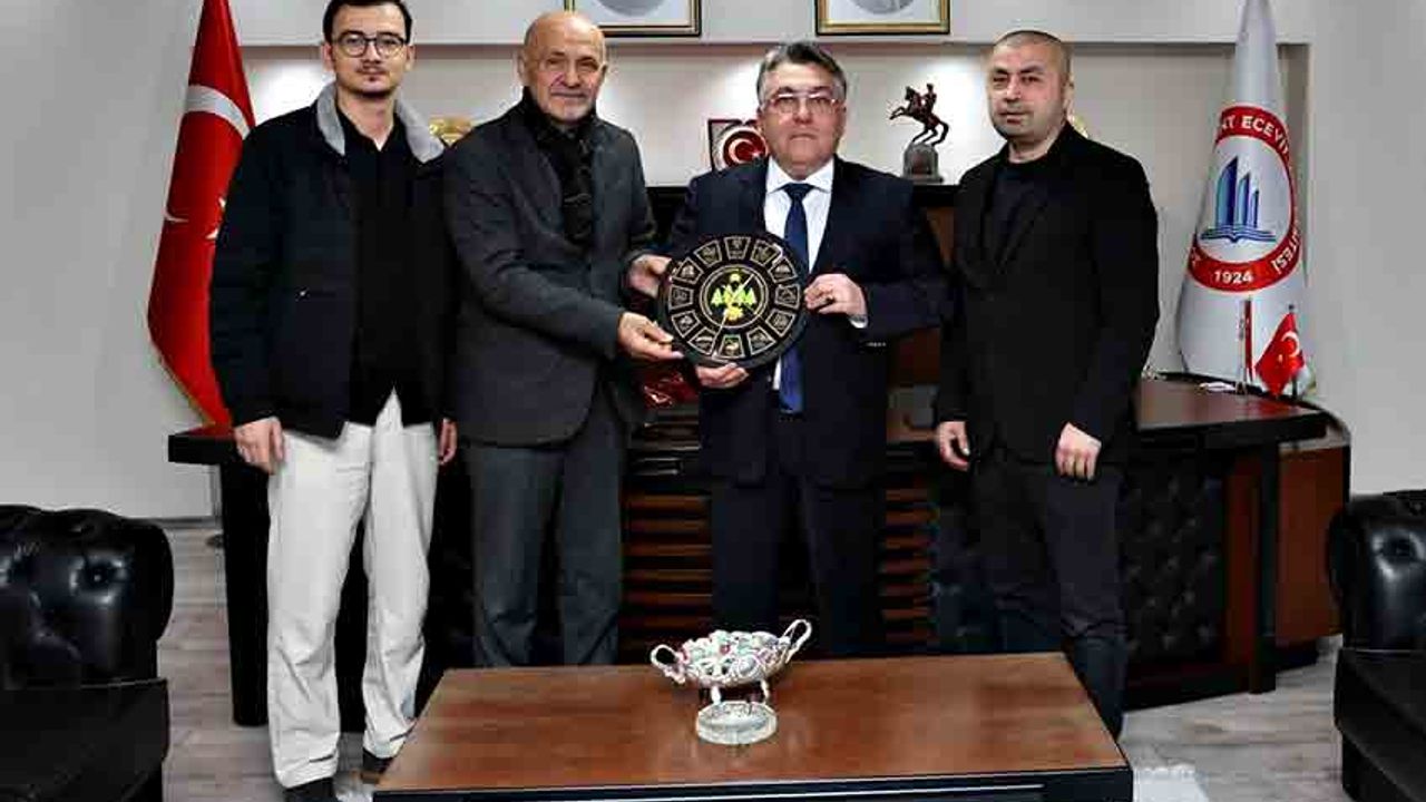 Ziyarette Dernek Başkanı Mehmet Işık Rektör Özlçer’e çeşitli hediyeler takdim etti.