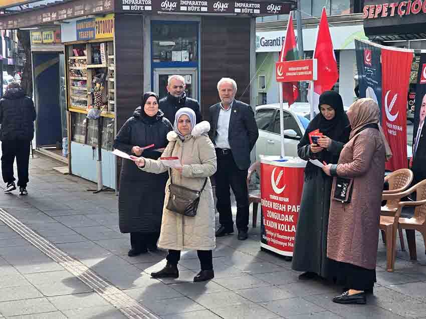 Yeniden Refah Partisi Zonguldak İl Teşkilatı, hafta sonu kent merkezinde üye çalışması gerçekleştirdi. Çalışmaya, partinin MKYK Üyesi Hidayet Kaya da katıldı. Kent merkezinde kurulan stantta yapılan üye çalışması vatandaşlardan yoğun ilgi gördü.