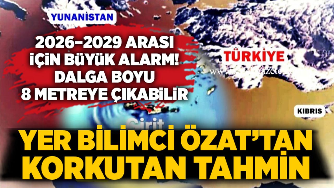 2026-2029 arasında Girit'in güneyinde 8.0-8,2 büyüklükleri arasında, yer yer 9-10 şiddetinde bir deprem meydana gelebileceğini savunan Özat, "Mayıs 2025 tarihinde Girit'in kuzeyinde 6'lık iki tane deprem oldu. Marmaris açıklarında 5.8'lik deprem oldu. Bunlar buz dağının görünen kısmı bile değil. Burada bir Afrika plakası var. Bilim insanları Türkiye'de Pasifik çemberindeki gibi Japonya, Endonezya, Filipinler‘deki gibi deprem olmaz diyor. Doğru ama bir parantez açmak gerekiyor. Tıpkı Japonya'da, Endonezya'da, Filipinler'de, Şili'de o ateş çemberinde olan depremlerin ve tsunamilerin bir benzeri sadece Girit bölgesinde olur. Afrika levhası, Ege ve Anadolu'nun altına giriyor. Söz konusu sismik boşlukta 2025 yılı itibariyle 722 yıllık bir gerilme var. Bilim insanları bununla ilgili ciddi çalışmalar yaptı. 2026-2029 arasında 8,1 ya da 8,2 büyüklüğüne çıkacak. Yunanistan'ın Girit adasında 9-10 şiddetinde bir salınım ihtimali yüksek. Bizden ortalama 200 kilometre uzak ancak bu salınım tsunami etkisi oluşturacak. Muğla, Aydın, Antalya batı kıyıları ve İzmir'in güneyi titreşim ve tsunami dalgalarından etkilenecek. Son iki bin yılda 7 kez yaşanmış. Bu aynı zamanda Yunanistan ve Türkiye başta olmak üzere Kıbrıs, Libya, Mısır, Tunus, İtalya, Arnavutluk ve kısmen de Suriye, Lübnan, Filistin ve İsrail kıyıları da bu tsunami dalgalarından etkilenecek. Tsunami dalgaları 15 ila 25 dakika sonra kıyılarımıza ulaşacak. Tsunaminin saatteki hızı 400 kilometreyi geçecek. Türkiye'nin önünde irili ufaklı çok adaları var. Bunlar tsunami etkisini kıracak ancak etkisini kırsa da tsunamiler, fırtına dalgaları gibi değildir, dolanma davranışı gösterir, koy ve körfezlerde büyük ve kıyıya yaklaşınca su duvarı oluşturur. Düz alanlarda 1 ila 2 kilometre kadar içeri girecek. Tsunami dalgasının boyu 2 ila 8 metre arasına çıkabiliyor. 20 senedir hazırlık evresi depremleri gerçekleşiyor. Şu an dahil olmak üzere 2026 ile 2028 sürecinde bu ana şoktan önce 5.0, 5.3, 5.5, 5.8'lik en az 4-5 tane deprem yaşanacak. Türkiye'nin batısından kalan her yerde bu deprem hissedilebilecek. Eğer 8.3'e ulaşırsa Ordu, Giresun, Trabzon'dan çok hafif şekilde hissedilebilir. Kuvvetle muhtemel Zonguldak'a kadar olan kesimde hissedilecek" şeklinde konuştu.