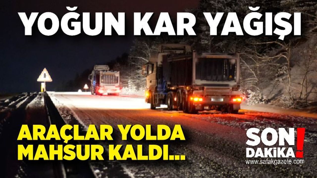 yoğun kar yağışı: Araçlar yolda mahsur kaldı