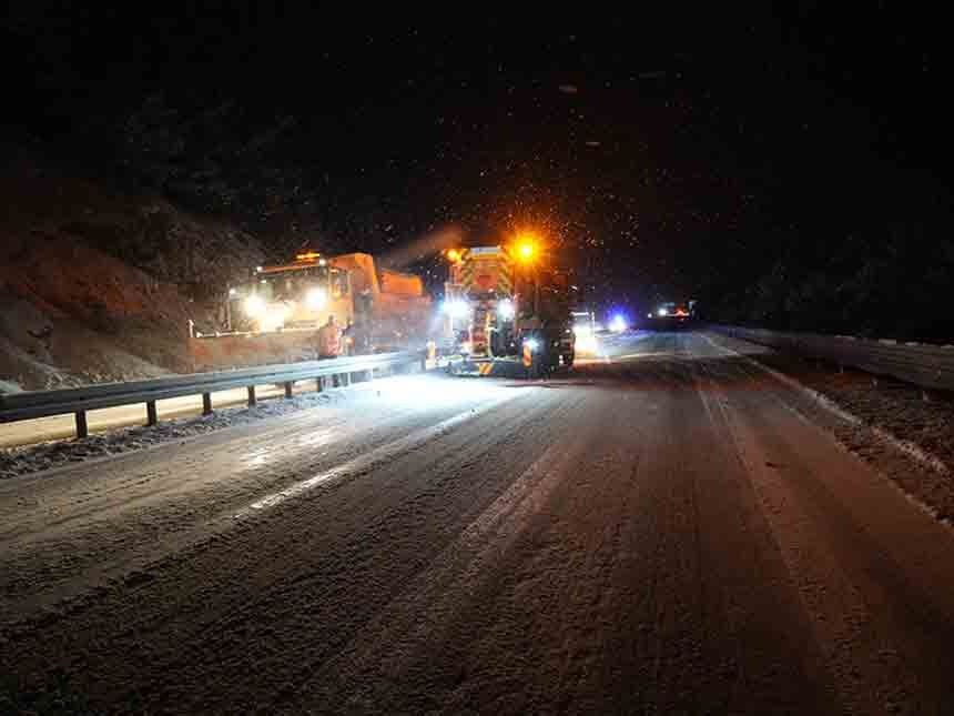 Karayollarına bağlı ekipler ise Oyrak mevkiinde hem kar kürüme hem de tuzlama çalışması yürüterek yolda mahsur kalan araçlara yardım ediyor.