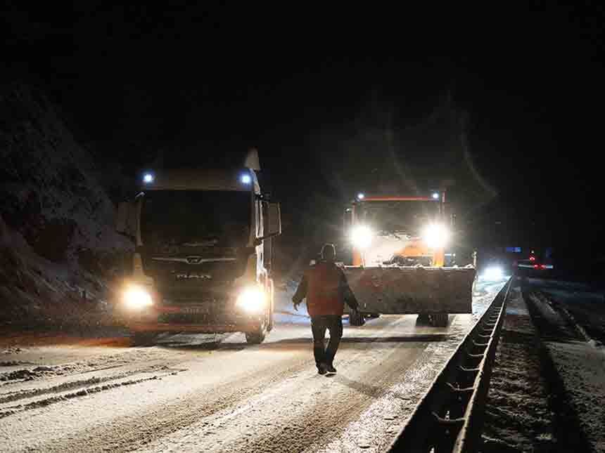 Karayolları ekipleri ulaşımın yeniden sağlanabilmesi için çalışmalarını aralıksız sürdürüyor. Yolda kalan bazı sürücüler de araçlarına zincir takarak ilerlemeye çalıştı. Oyrak geçidinde hava sıcaklığı ise sıfırın altında 4 dereceye kadar düştü. Jandarma ekipleri de ulaşımın aksamaması için seferber oldu.