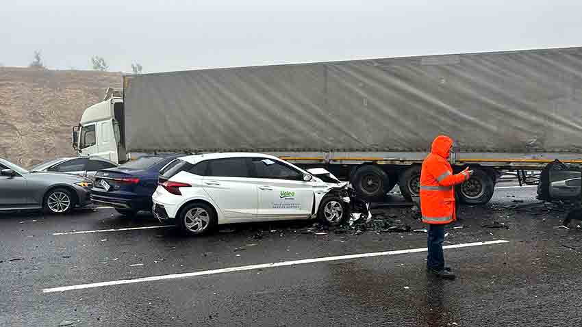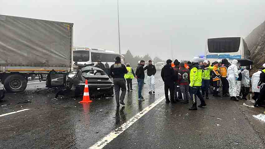 Gaziantep-TAG Otoyolu Gaziantep-Şanlıurfa istikametinde bugün sabah saat 08.30 sıralarında etkili olan yoğun sis ve sağanak yağış, zincirleme trafik kazasına neden oldu. Kazaya, 1 otobüs, 1 tır ve 8 otomobil karıştı. Olay sonrası yol adeta savaş alanına döndü.