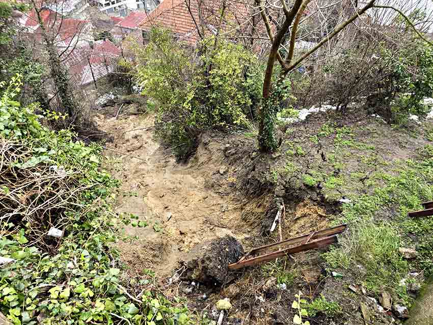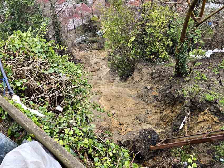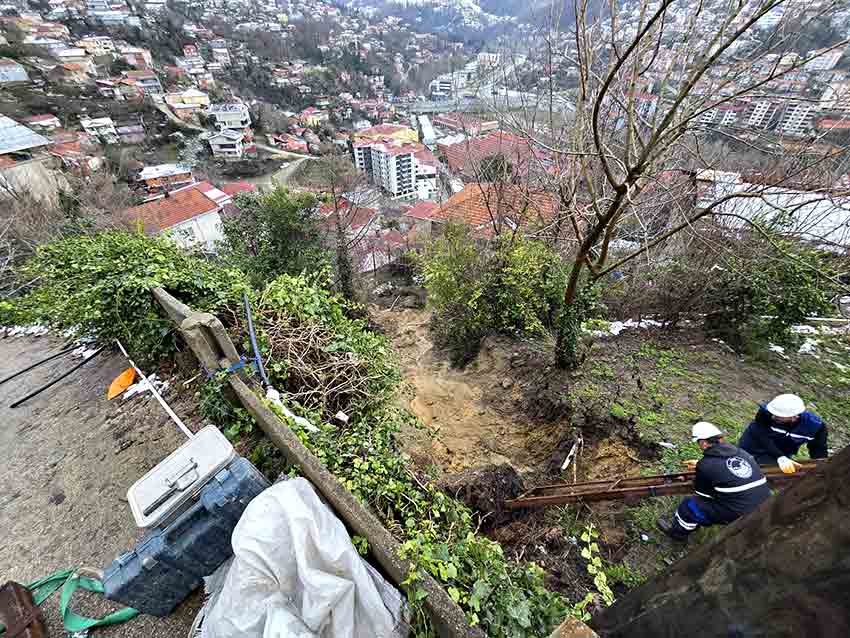 Zonguldak’ta birkaç haftadır etkisini sürdüren yağmur ve kar yağışlarının ardından Mithatpaşa Mahallesi Karanfil Sokak’ta heyelan oluştu. Meydana gelen toprak kaymasında elektrik direkleri devrilirken, ana hat su borusunda da hasar meydana geldi.