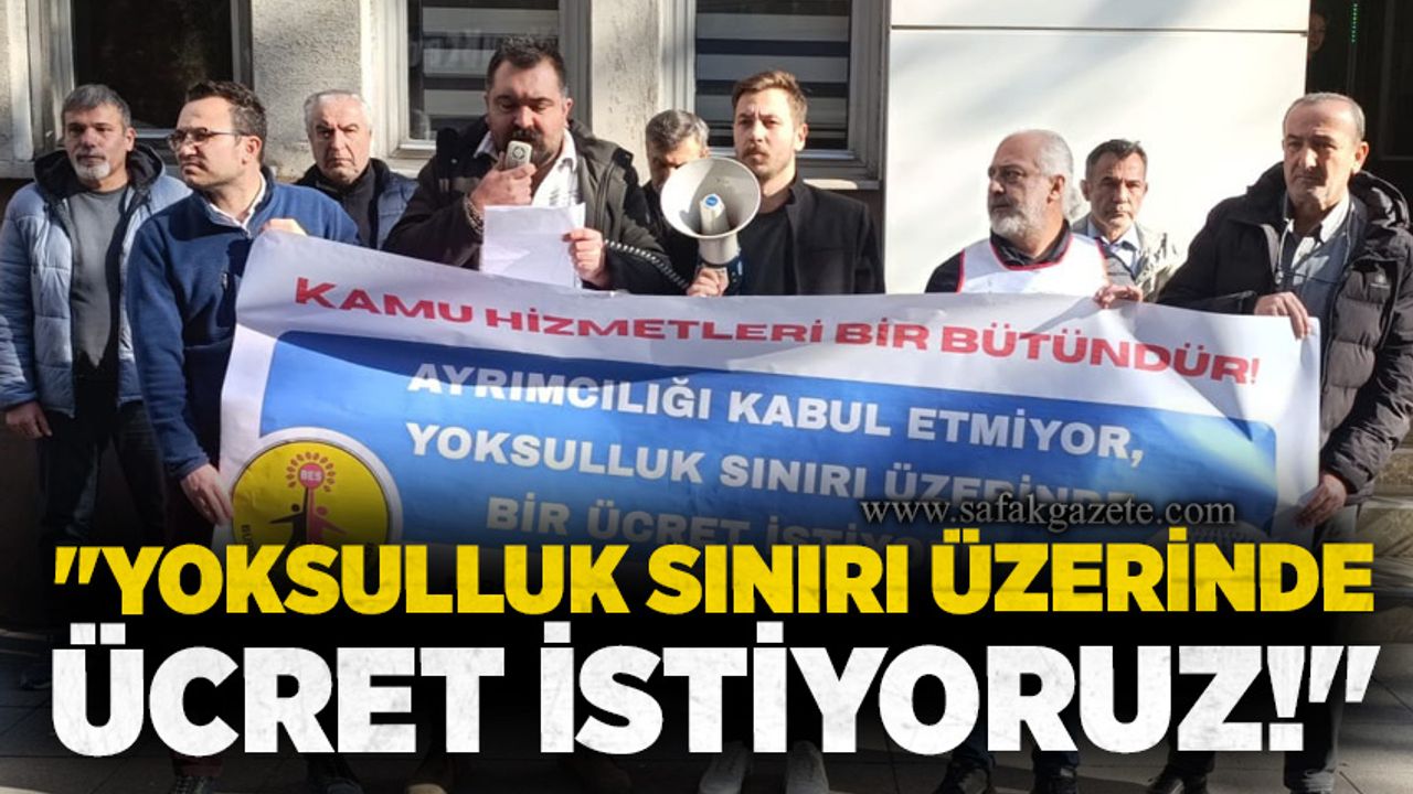 BES Şube Başkanı Hasan Fayız yaptığı konuşmada, "kamu hizmetlerinin bir bütün olduğunu ve yoksulluk sınırı üzerinde ücret hissettiğini belirterek şunları söyledi:"Kamu işvereniyle yetkili sendikalar arasında 2026 ve 2027 yıllarını kapsayan toplu sözleşmede oynanan orta oyununda; 2026 yılı için %11+7, 2027 yılı için ise %5+%4 oranında bizlere sefalet zammı dayatılmışken, yapılan toplu sözleşme ortada yokmuş gibi, TBMM Plan ve Bütçe Komisyonu’nda üst düzey kamu görevlileri ve merkez uzmanlarının maaşlarında iyileştirme ön gören yasa taslağı kabul edilmiştir. Yapılan bu düzenleme öncelikle iktidarın mevcut 4688 Sayılı Yasayı ve bu yasaya göre imza altına alınan toplu sözleşme hukukunu ortadan kaldırmak olduğu bilinmelidir.
