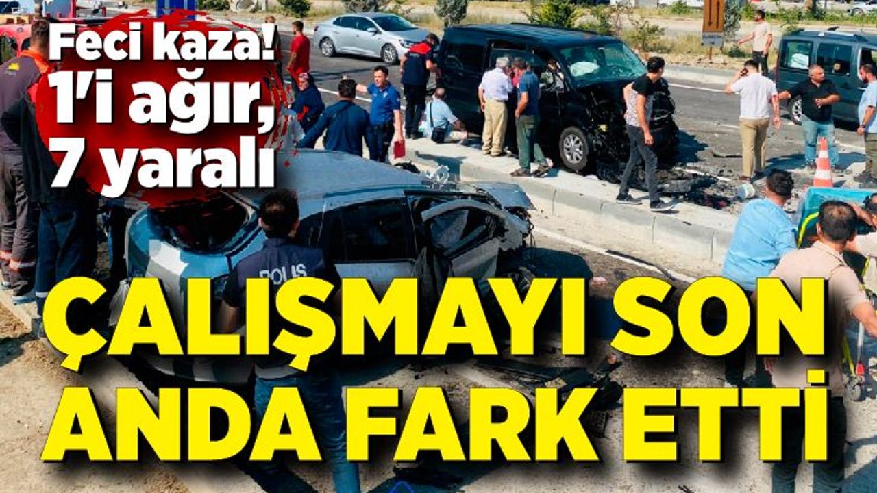 Karabük'ün Eskipazar ilçesinde yol çalışmasından dolayı tek şeride düşmesi sonucu orta refüje çarpan otomobil takla atarak karşı şeride geçerek, otomobil sınıfında bulunan araç ile çarpıştı. Akaryakıt istasyonun güvenlik kamerasına anbean yansıyan kazada 1'i ağır 7 kişi yaralandı.