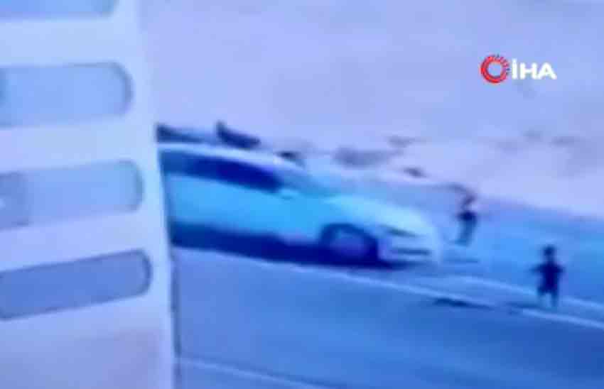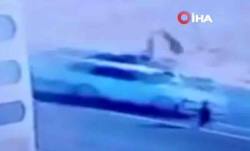 Kaza anına ait görüntülerde çevredeki insanların panik içinde yardıma koştuğu anlar yer aldı.