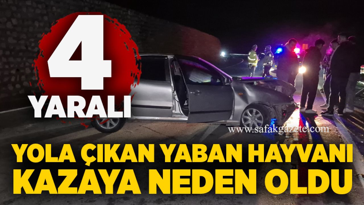 Bartın-Amasra karayoluna çıkan yaban hayvanı kazaya neden oldu. Bariyerlere çarpan otomobilde bulunan 4 kişi yaralandı.