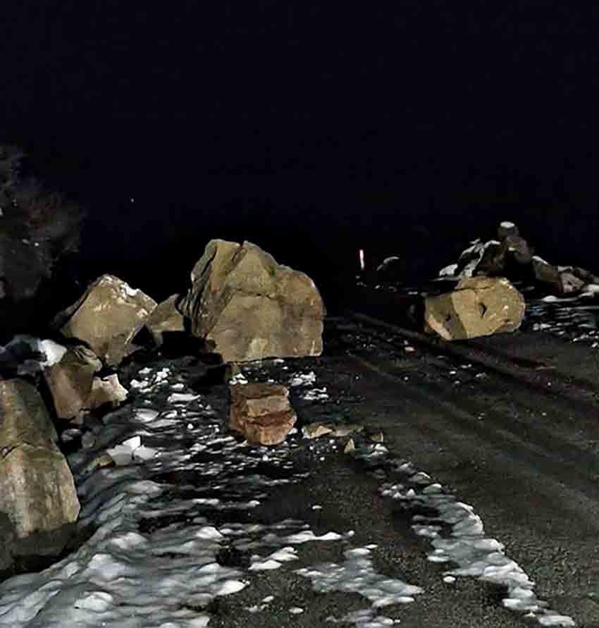 Edinilen bilgilere göre, halk arasında “Kavşak” olarak bilinen mevkide yamaçtan kopan kayalar yol üzerine düştü. Olayın ardından yol, olası risklere karşı tedbir amaçlı olarak ulaşıma kapatıldı.