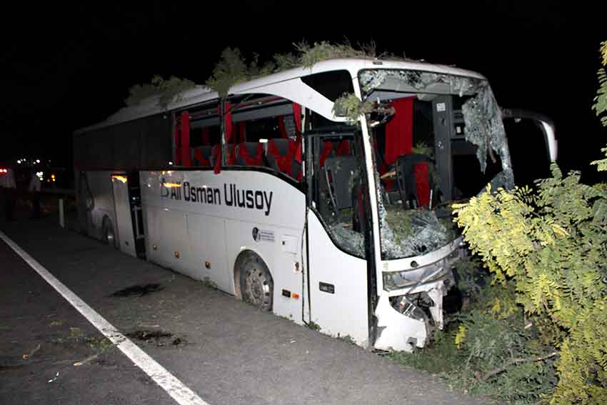 Kayseri'de yolcu otobüsünün yoldan çıkarak orta refüjdeki ağaçlara çarpması sonucu meydana gelen kazada 1 kişi hayatını kaybetti, 13 kişi de yaralandı.