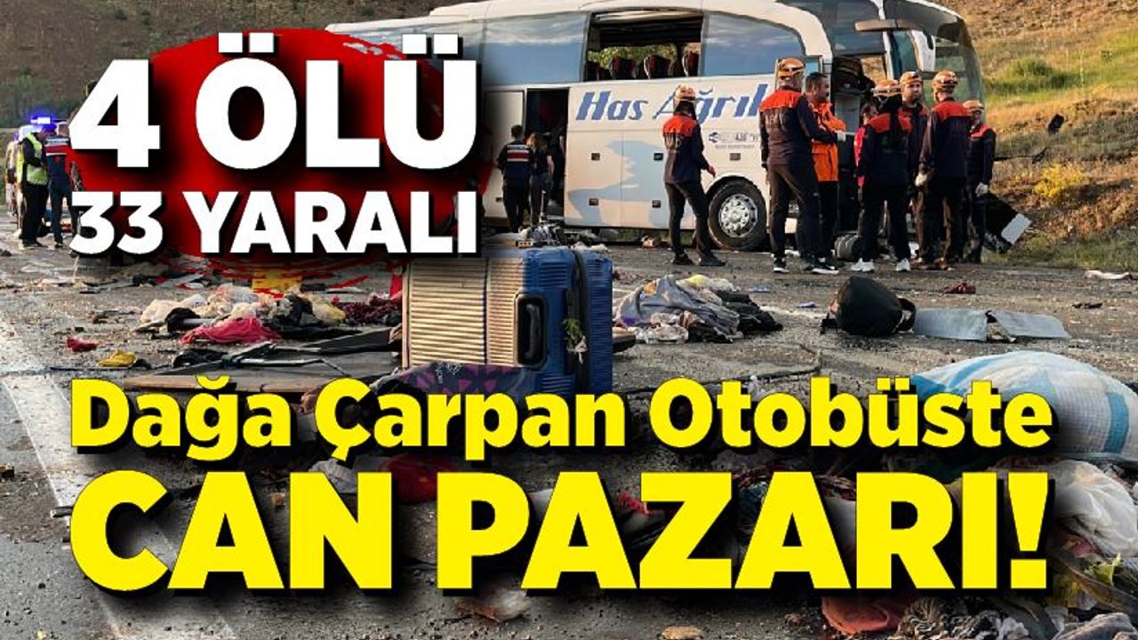 Sivas'ta kontrolden çıkan yolcu otobüsünün dağ yamacına çarpması sonucu meydana gelen kazada 4 kişi hayatını kaybetti, 1’i ağır 33 kişi yaralandı.