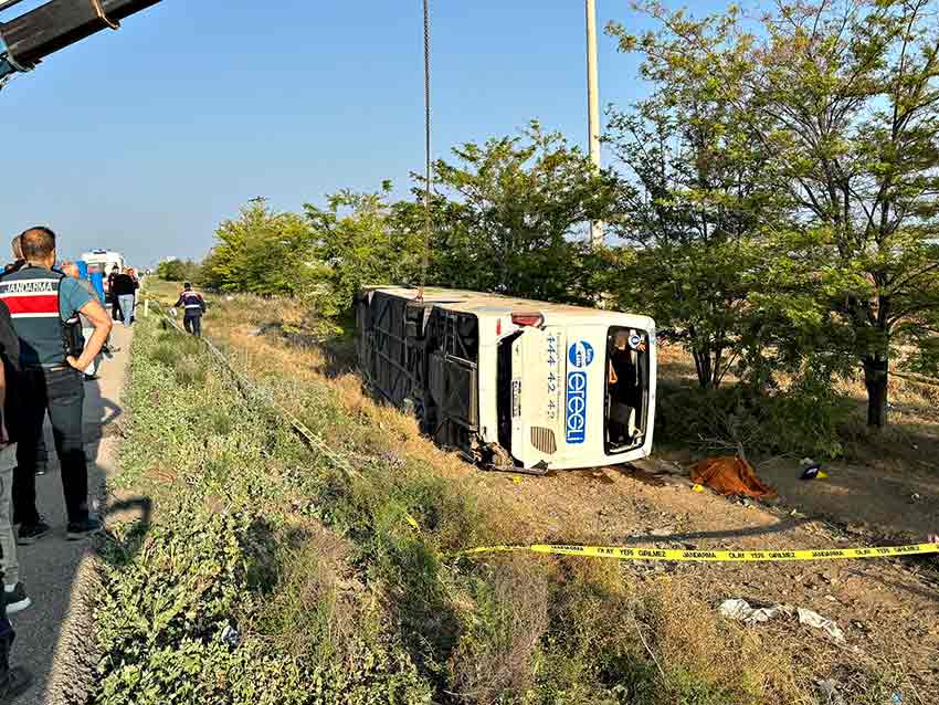 Konya’nın Ereğli ilçesinde yolcu otobüsünün şarampole devrilmesi sonucu 1 kişi hayatını kaybetti, 23 kişi yaralandı.