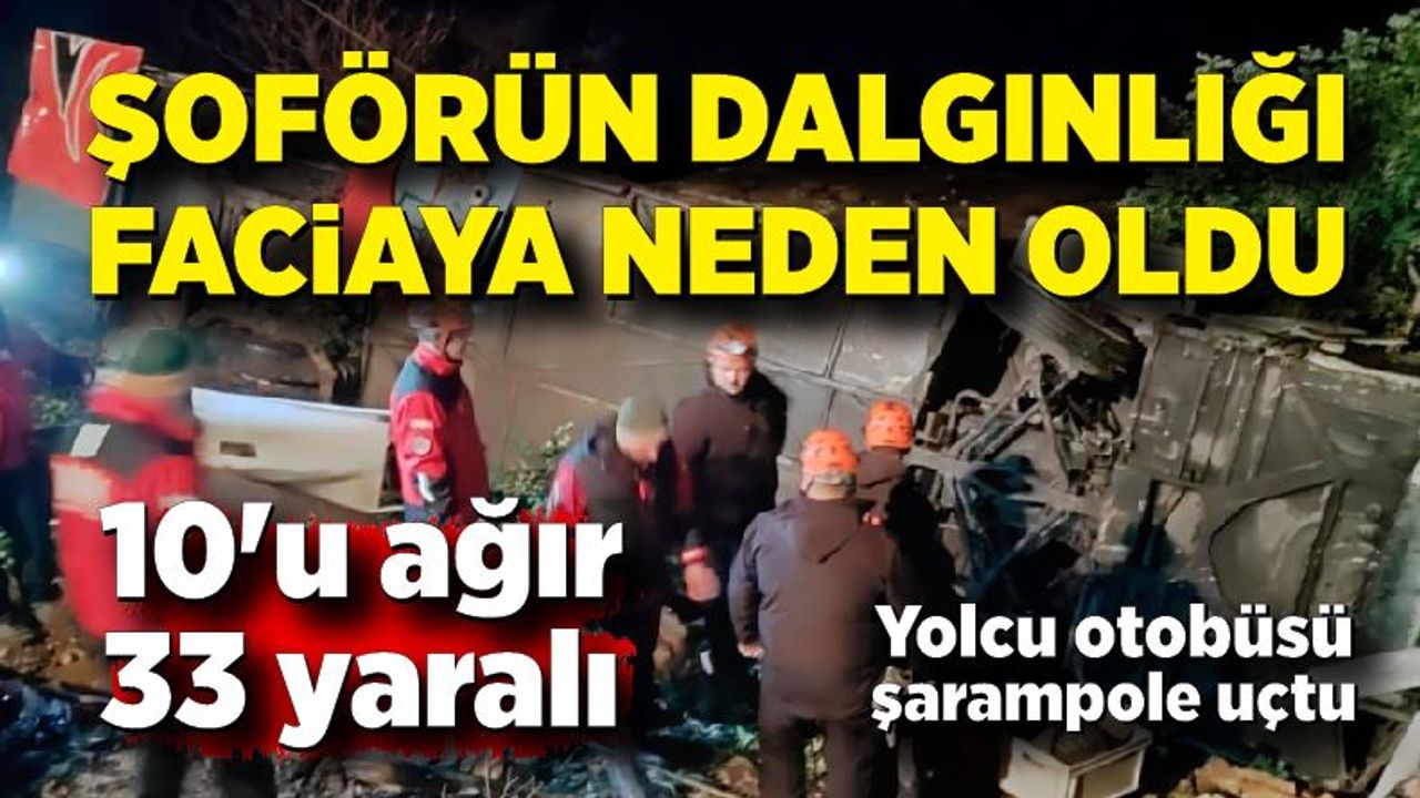 Antalya'da yolcu otobüsünün şarampole uçması sonucu meydana gelen kazada 33 kişi yaralandı. Yaralılardan 10'unun durumunun ağır olduğu öğrenildi.