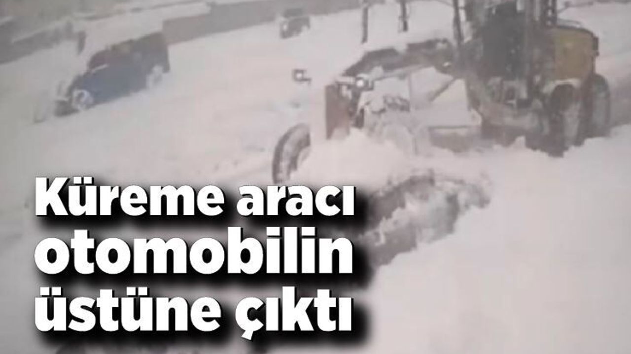 Yol açma çalışması yapan kar küreme aracı sürücüsü, yol kenarında park halinde bulunan ve üzeri tamamen karla kaplanan otomobili fark edemedi. Kar yığını sandığı cismin aslında bir araç olduğu, küreme aracının otomobile çarpmasıyla ortaya çıktı.