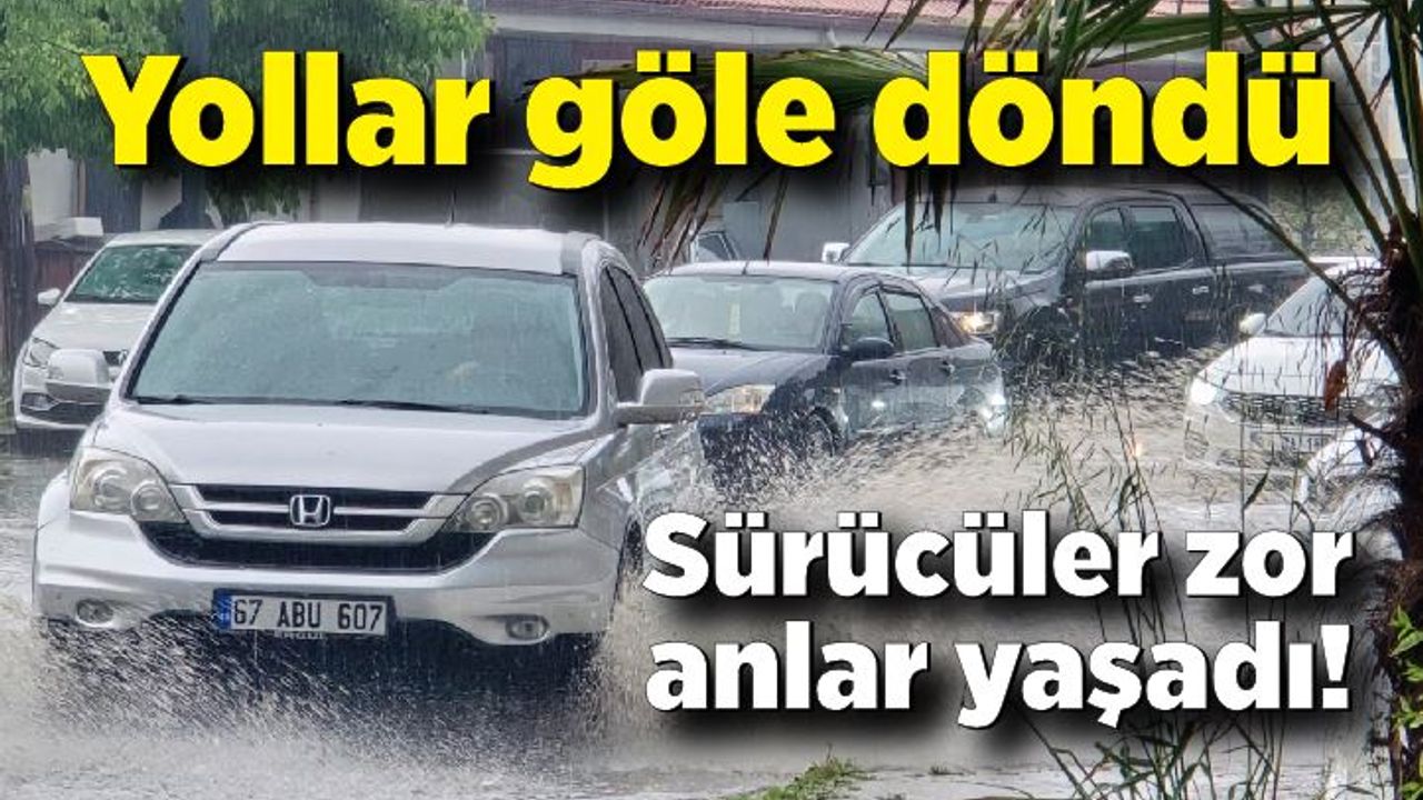 Zonguldak'ta aniden bastıran yağış hayatı olumsuz etkiledi. Şiddetli yaş nedeniyle Kent merkezinde yollar Göle dönerken sürücüler zor anlar yaşadı