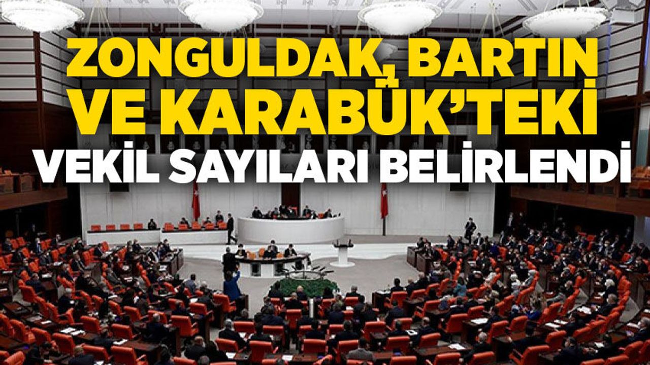 Buna göre Zonguldak'ın Türkiye Büyük Millet Meclisi'nde yine 5 vekili olacak. Komşu iller Bartın 2, Karabük 2 Düzce 3 Bolu 3 milletvekili çıkartacak. Karab.ük nüfus oranı azaldığı için vekil sayısının düşürülmesiyle göze çarptı.