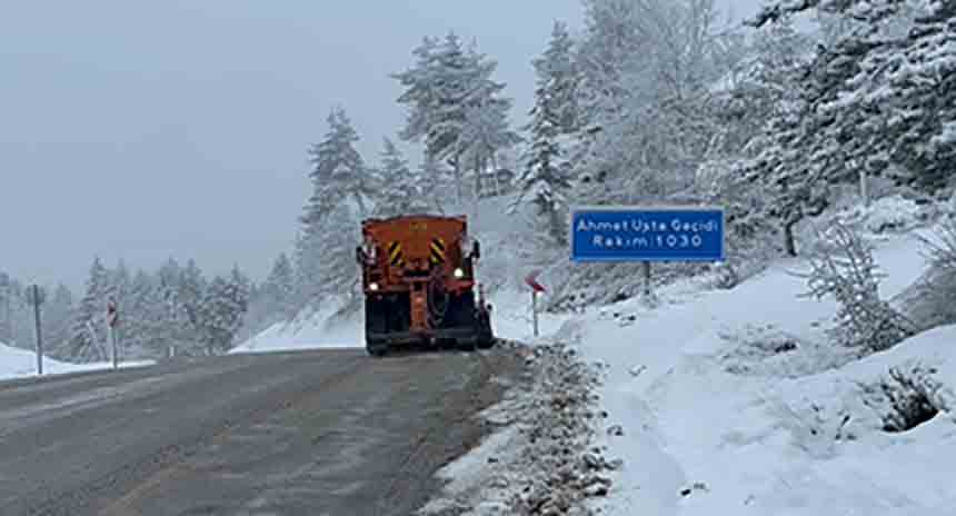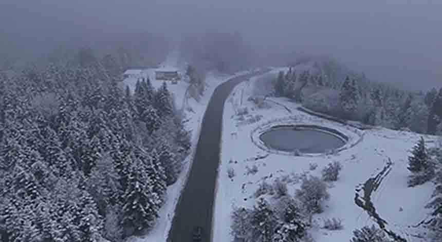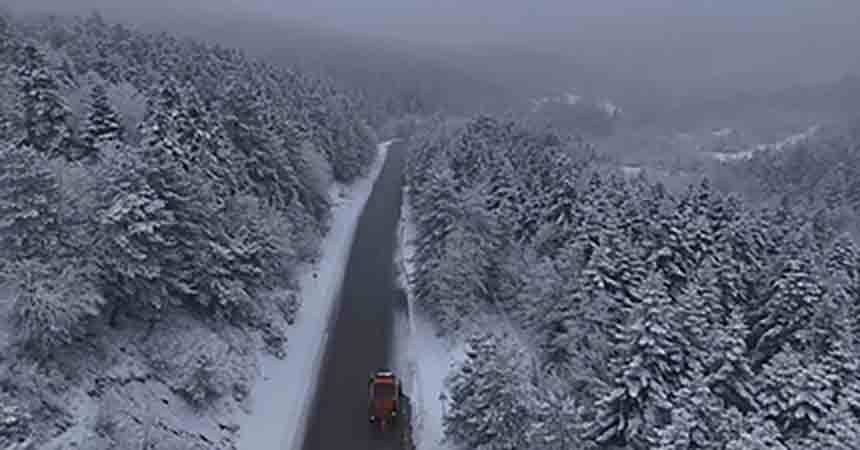 Kar yağışı ve sisin etkili olduğu bölgede oluşan manzara dronla görüntülendi. Karayolları ekipleri, ulaşımda aksama yaşanmaması için kar küreme ve tuzlama çalışmalarını sürdürdü.
