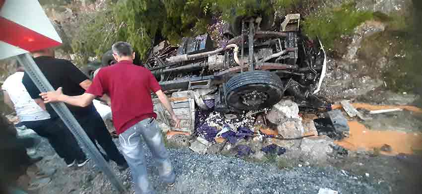 Kaza, dün saat 20.00 sıralarında Akseki-Manavgat karayolu Manayıt mevkiinde meydana geldi. Edinilen bilgiye göre Osman Öztürk (60) idaresindeki 07 LEG 98 plakalı yumurta yüklü kamyon Manayıt mevkiinde virajı alamayıp yolun kenarındaki kayalık ve taşlık alana doğru savrulup ters döndü.