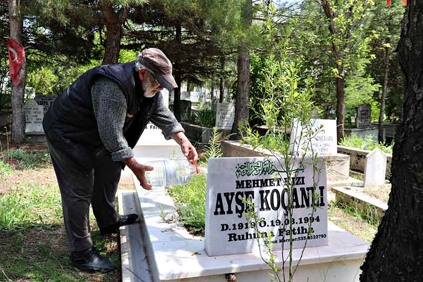 1994 yılında kaybettiği annesininin kabrini her 15 günde bir ziyaret etitğini belirten 79 yaşındaki Halil Koçanlı, "Annemizi ziyarete geldik, inşallah Allah dualarımızı kabul eder. Allah kimseye böyle bir acı vermesin ama insanın başına geliyor. Senede bir defa değil, 10-15 günde bir annemi ziyarete gelirim. Bir motosikletim var, onunla mutlaka gelirim. Yukarıda da koronadan vefat eden kızım var. Babamı, annemi, kızımı hepsini dolaşıyorum. Böyle bir acıyı anlatması kolay değil, söylemesi bile zor. gerisini siz anlayın" dedi.
