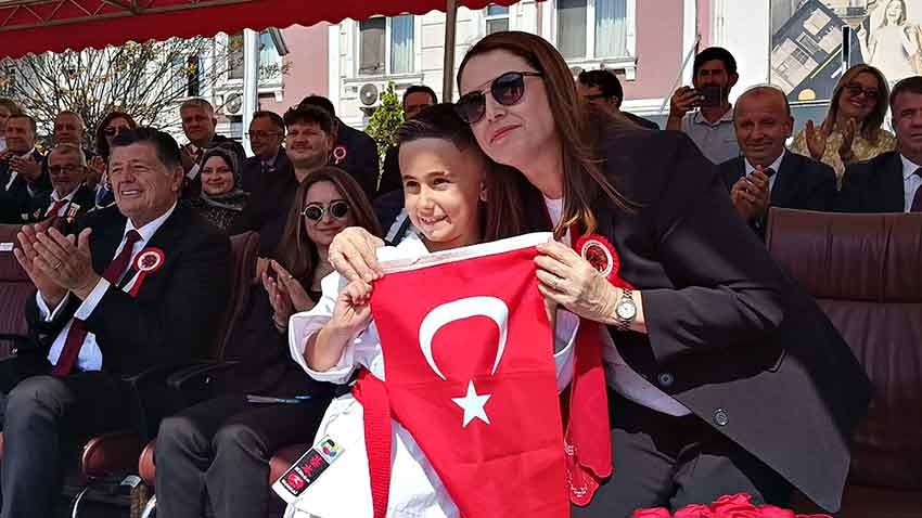 Komando Birliği’nin renkli sis bombalarıyla yaptığı gösteri ve Türk bayrağı açarak protokolü selamlaması büyük alkış topladı. Program, araçların sirenleri eşliğinde gerçekleşen geçit töreniyle sona erdi.
