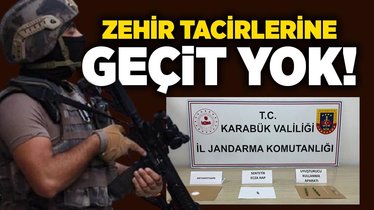 Karabük Cumhuriyet Başsavcılığı koordinesinde, İl Jandarma Komutanlığı ekiplerince 9 Temmuz 2025 tarihinde Karabük Merkez'de gerçekleştirilen operasyonda, 3 şüphelinin üzerinde, eşyalarında ve ikametlerinde yapılan aramada 1,25 gram metamfetamin, 1 adet sentetik ecza hap ve 4 adet uyuşturucu kullanma aparatı ele geçirildi.