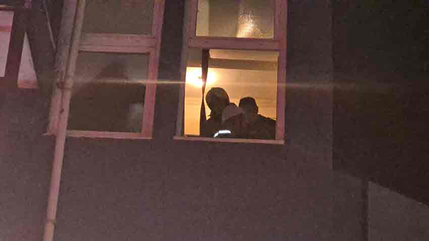 Evde engelli bir şahsın bulunduğunu öğrenen ekipler, 3 katlı evin çatı katına çıkarak içeriye girmek istedi. Kapıyı kilitleyerek açmayan şahıs, önemli bir şey olmadığını söyleyerek, polis ve diğer görevlilerin gitmesini istedi. Şahsı ikna edemeyen ekipler, şahsın ailesine ulaşarak kapıyı kırmak için izin istedi.