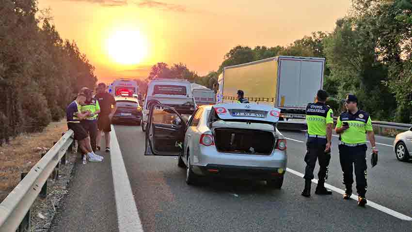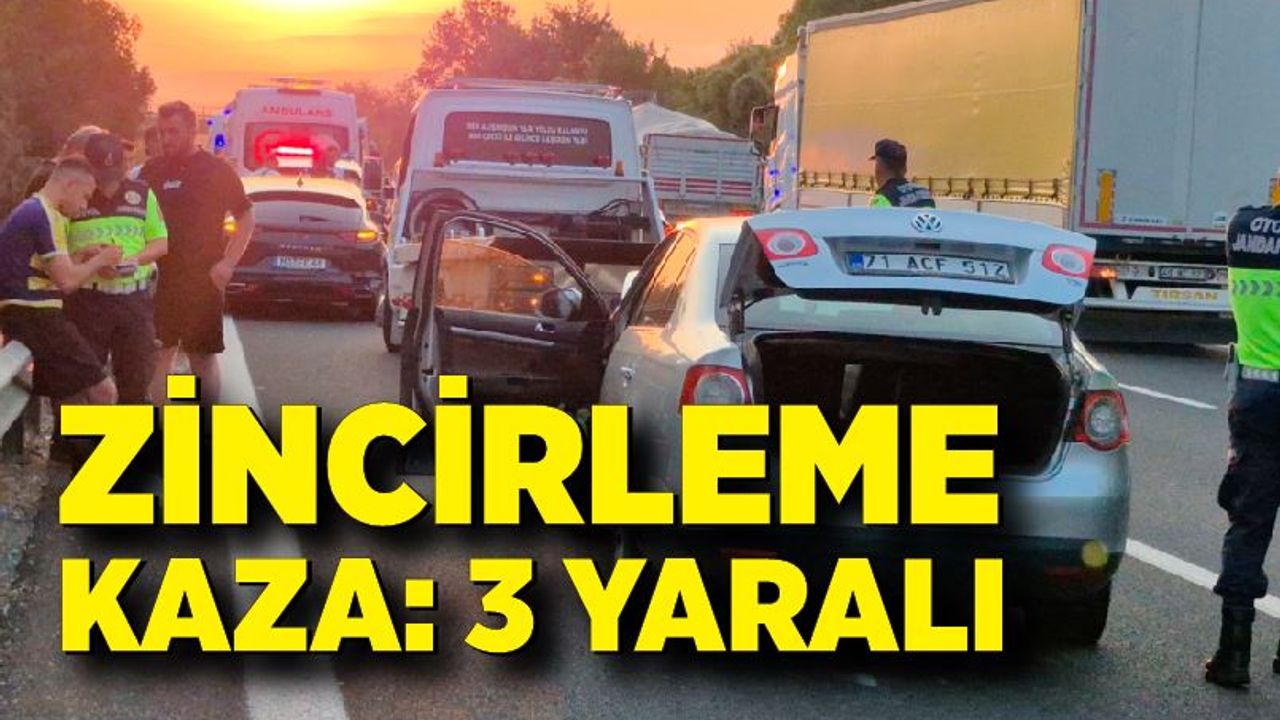 Kaza, akşam saatlerinde Anadolu Otoyolu Düzce kesimi Küçük Melen mevkiinde meydana geldi. Edinilen bilgilere göre, Ankara’dan İstanbul istikametine girmekte olan A.S. idaresindeki 34 DKH 514 plakalı Volkswagen marka cipe, aynı istikamete gitmekte olan Y.A. idaresindeki MA FE 46 Proceed marka yabancı plakalı otomobil çarptı. Çarpışma nedeniyle yavaşlayan otomobillere arkalarından gelan T.S.A. idaresindeki 71 ACF 512 plakalı Volkswagen marka otomobil çarptı. Kazada araçlarda bulunan 3 kişi yaralandı. Kaza yapan otomobillerin sürücülerinin 112 Acil Çağrı Merkezine haber vermesi üzerine sağlık ve jandarma ekipleri bölgeye sevk edildi. Sağlık ekiplerinin ilk müdahalesini olay yerinde yaptığı yaralılar, ambulanslarla Düzce Atatürk Devlet Hastanesi ve Düzce Üniversitesi Hastanesine sevk edildi.