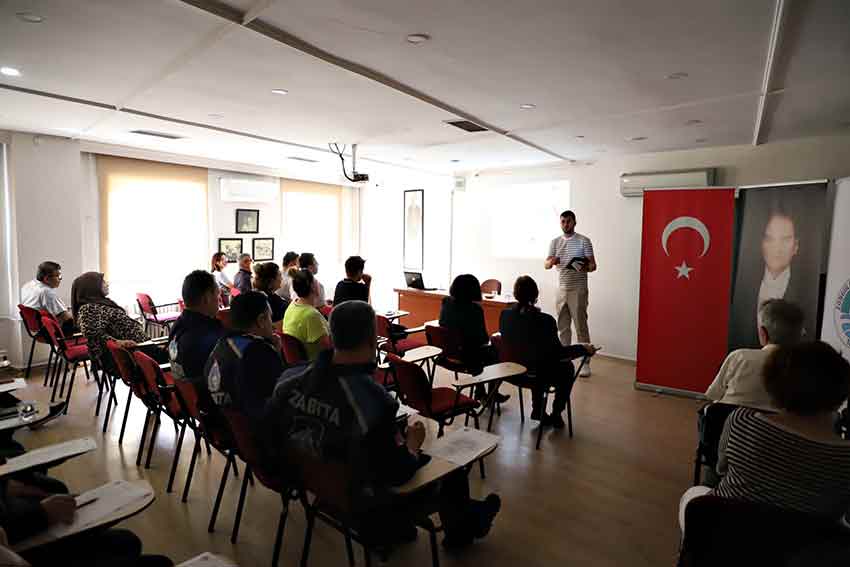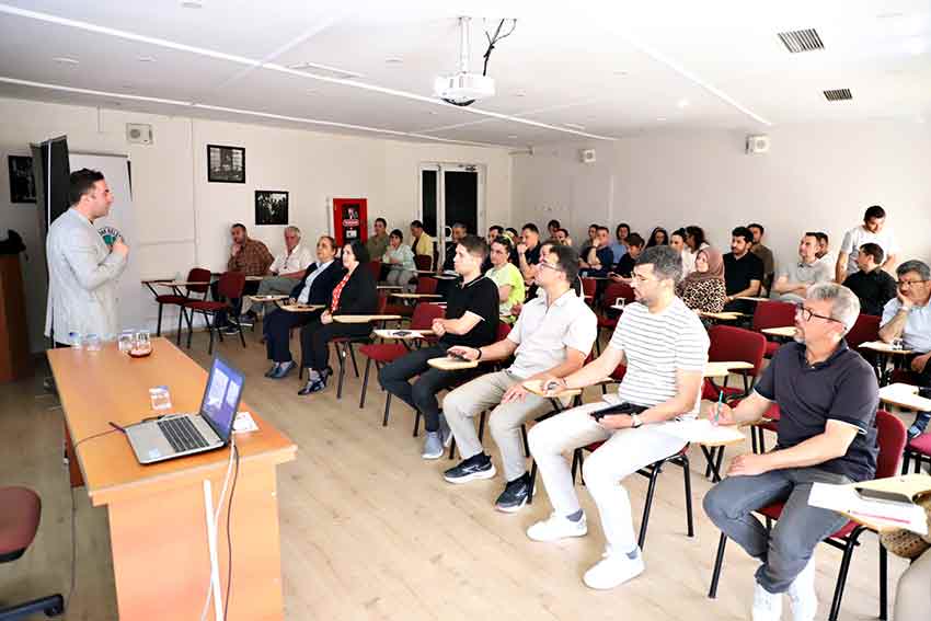 “Belediyelerde Sıfır Atık Projesi, Atık Yönetimi ve Enerji Verimliliği” konulu seminer, İklim Değişikliği ve Sıfır Atık Müdürü Hasan Latif Çöme tarafından verildi. Eğitimde, atık azaltımı, geri dönüşüm ve enerji tasarrufu gibi temel çevre konuları detaylı şekilde ele alındı.