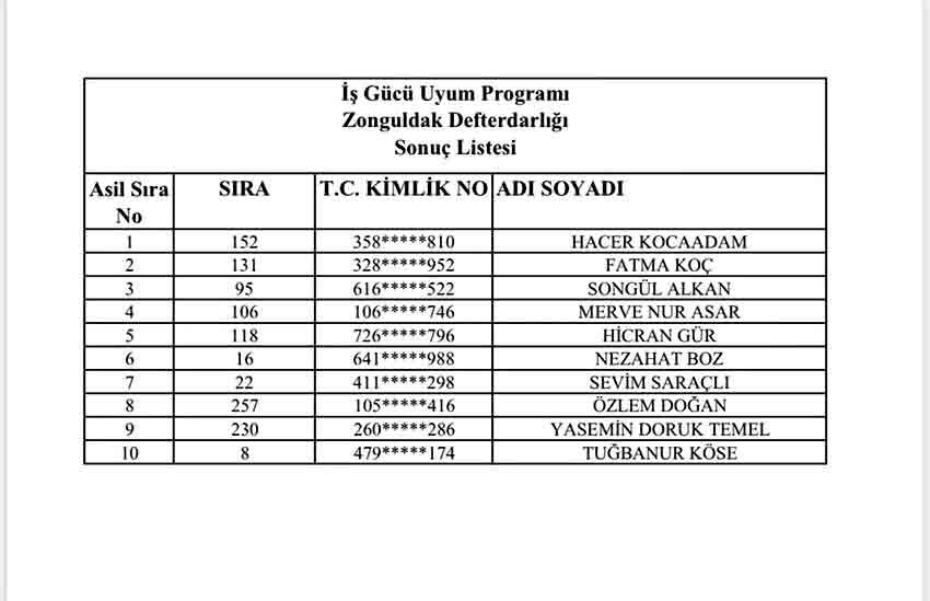 Zonguldak Defterdarlığı’nda görev alacak 10 kişinin belirlenmesiyle birlikte İşgücü Uyum Programı kapsamındaki alım süreci tamamlandı.