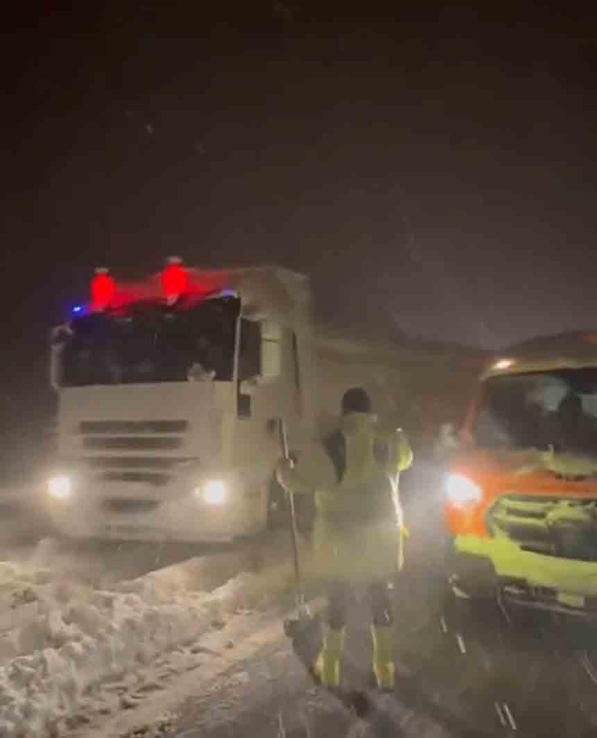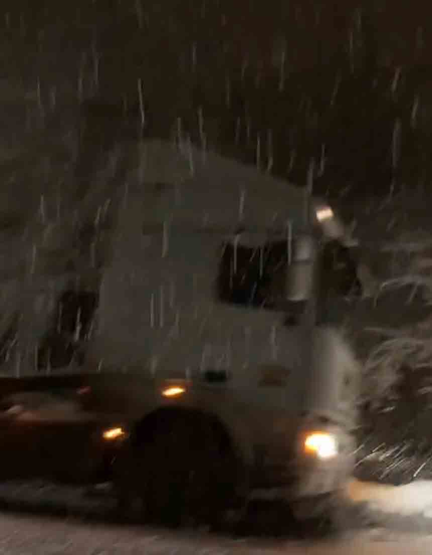 D-655 karayolu Kabalak mevkiinde yolda kalan araçlara müdahale etmek üzere bölgeye sevk edilen bir çekici, yoğun kar nedeniyle yoldan çıkarak kara saplandı. Çekicinin kurtarılması için çevredeki vatandaşlar da ekiplere destek verdi. O anlar cep telefonu kamerasıyla kaydedildi.