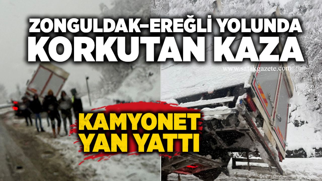 Zonguldak–Ereğli kara yolunda etkili olan kar yağışı ve buzlanma kazaya neden oldu. Deli Hakkı mevkiinde seyir halinde bulunan bir kamyonet, sürücüsünün direksiyon hâkimiyetini kaybetmesi sonucu yan yattı.