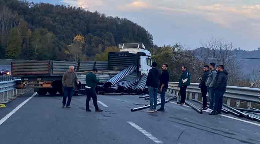 Edinilen bilgilere göre kaza, akşam saatlerinde Ereğli ilçesi Çatak mevkiinde meydana geldi. iddiaya göre 67 LK 263 plakalı tır, sürücüsünün direksiyon hakimiyetini kaybetmesi sonucu bariyerlere çarptı. Çarpmanın etkisiyle tırın dorsesinde bulunan demirler yola saçıldı. Kaza nedeniyle bölgede uzun araç kuyrukları oluşurken, yol bir süre trafiğe kapandı. Ekiplerin müdahalesinin ardından yolun yeniden trafiğe açılması için çalışmalar başlatıldı.