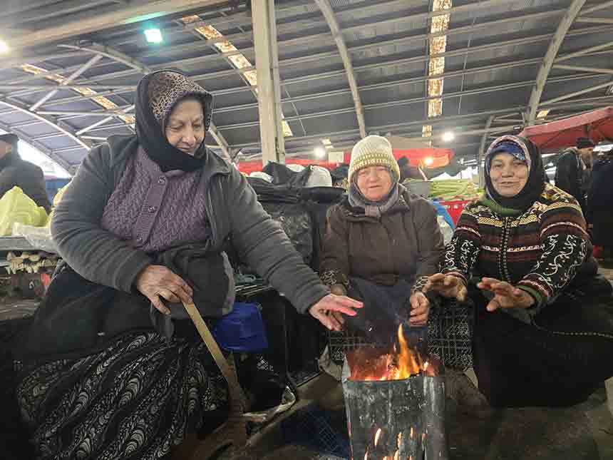 Sabahın erken saatlerinde tezgâhlarını kuran kadınlar, hem ürünlerini satmaya hem de soğukla mücadele etmeye çalıştı. Eldiven ve kalın kıyafetlere rağmen etkisini hissettiren soğuk hava nedeniyle kadınlar, tenekede yaktıkları ateşin başında kısa molalar vererek ısındı. Pazardaki bu görüntü, geçim mücadelesi veren emekçi kadınların zorlu koşullardaki yaşam mücadelesini bir kez daha gözler önüne serdi. Vatandaşlar, soğuk havaya rağmen çalışmaya devam eden kadınlara hayranlıkla bakarken, ortaya çıkan manzara duygulandırdı.