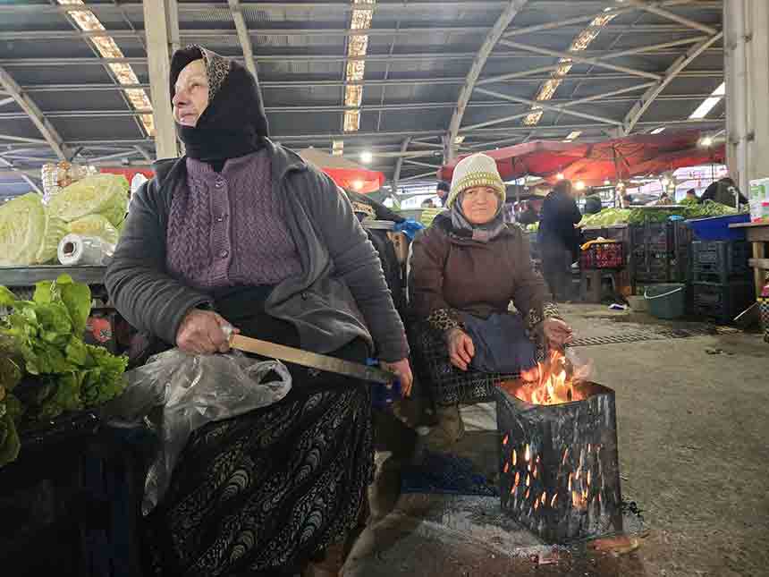 Zonguldak halk pazarında köylü pazarında satış yapan kadınlar soğuktan korunmak için tenekede Ateş yakarak ısınmaya çalıştı.