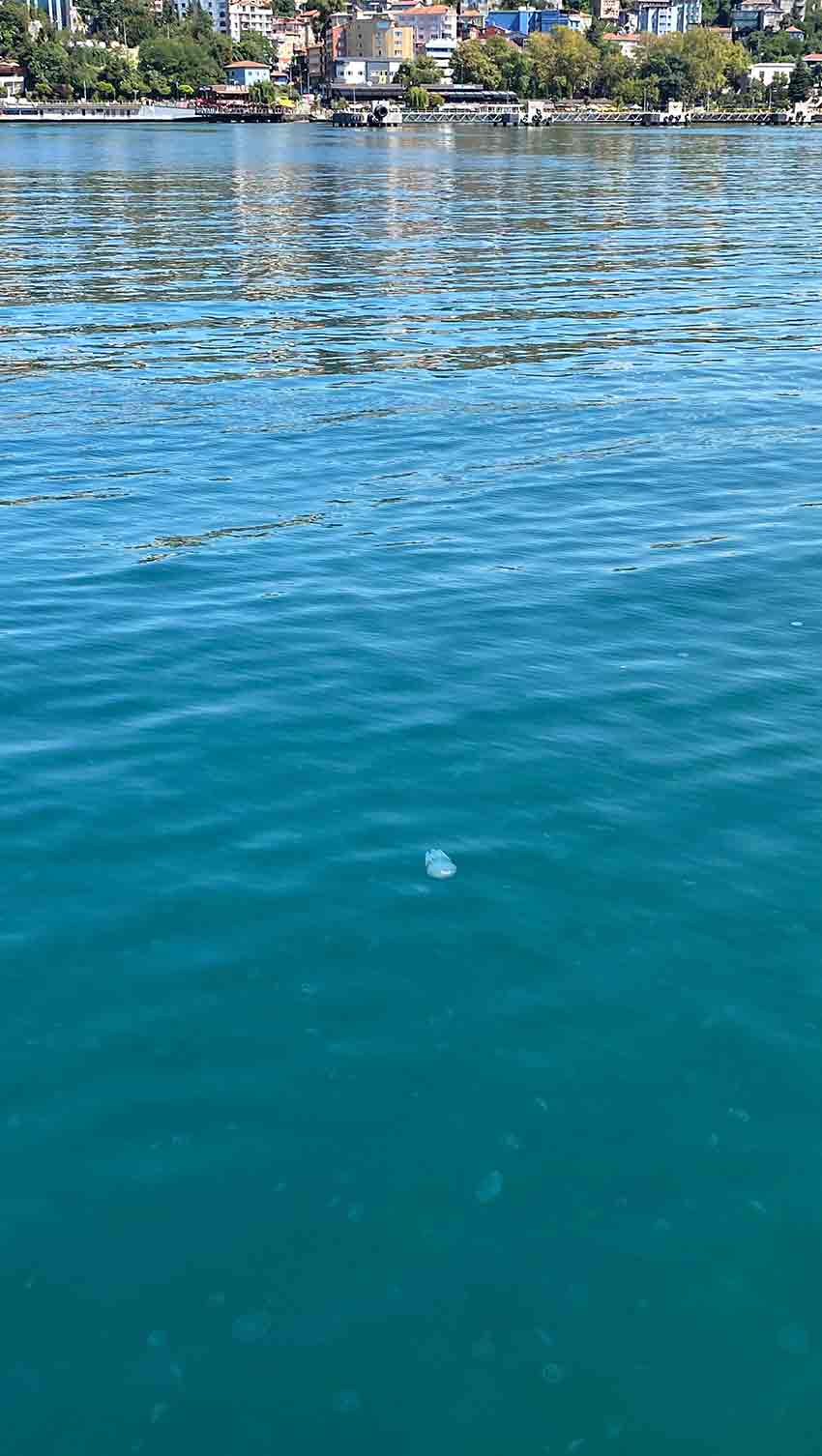 Deniz yüzeyinde dolaşan denizanaları zaman zaman sahile vurarak kum üzerinde birikiyor. Kıyı şeridinde gezintiye çıkan vatandaşlar, tehlikeli boyutlara ulaşan denizanası yoğunluğunu cep telefonlarıyla görüntüledi.