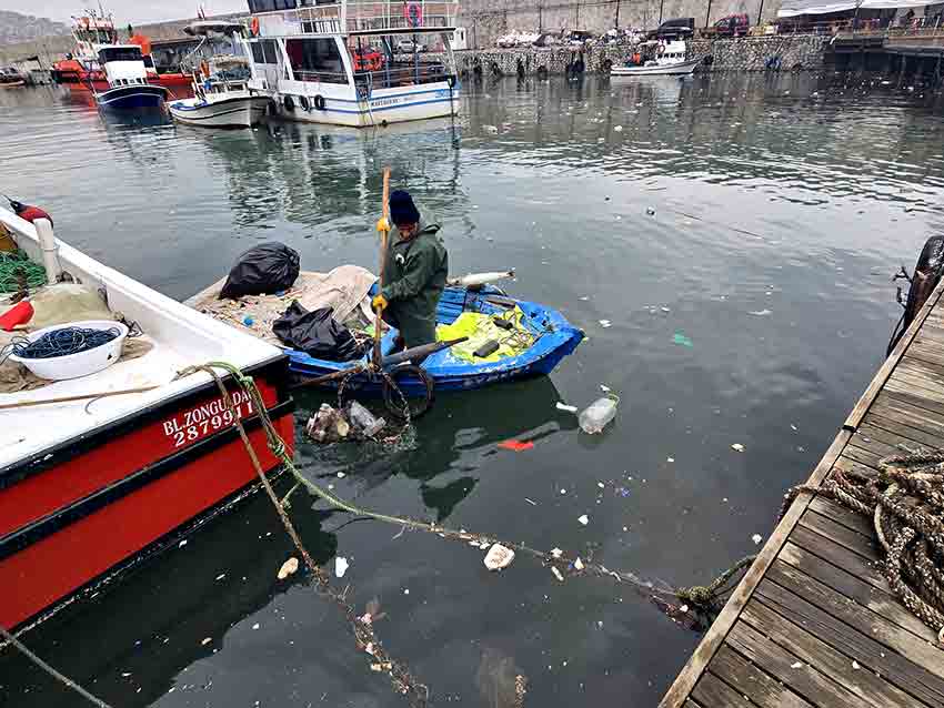Zonguldak’ta yaklaşık 10 gün boyunca etkili olan yağışlı ve fırtınalı hava, liman bölgesinde ciddi çevre kirliliğine yol açtı. Deniz yüzeyinde çok sayıda atık birikti.