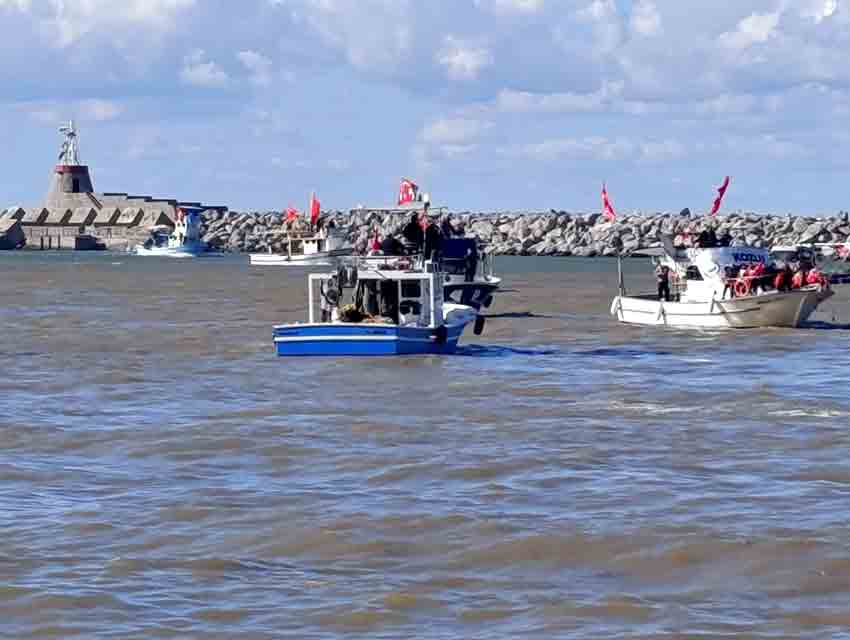 Cumhuriyetin 102. yılı kutlamaları çerçevesinde düzenlenen etkinlikte, römorkörler, jandarma ve Sahil Güvenlik Komutanlığı’na ait botlar, su püskürterek görsel bir şölen sundu. Ayrıca sivil tekneler de Türk bayraklarıyla donatılarak liman içinde konvoy yaptı, sirenler çalarak kutlamalara renk kattı.