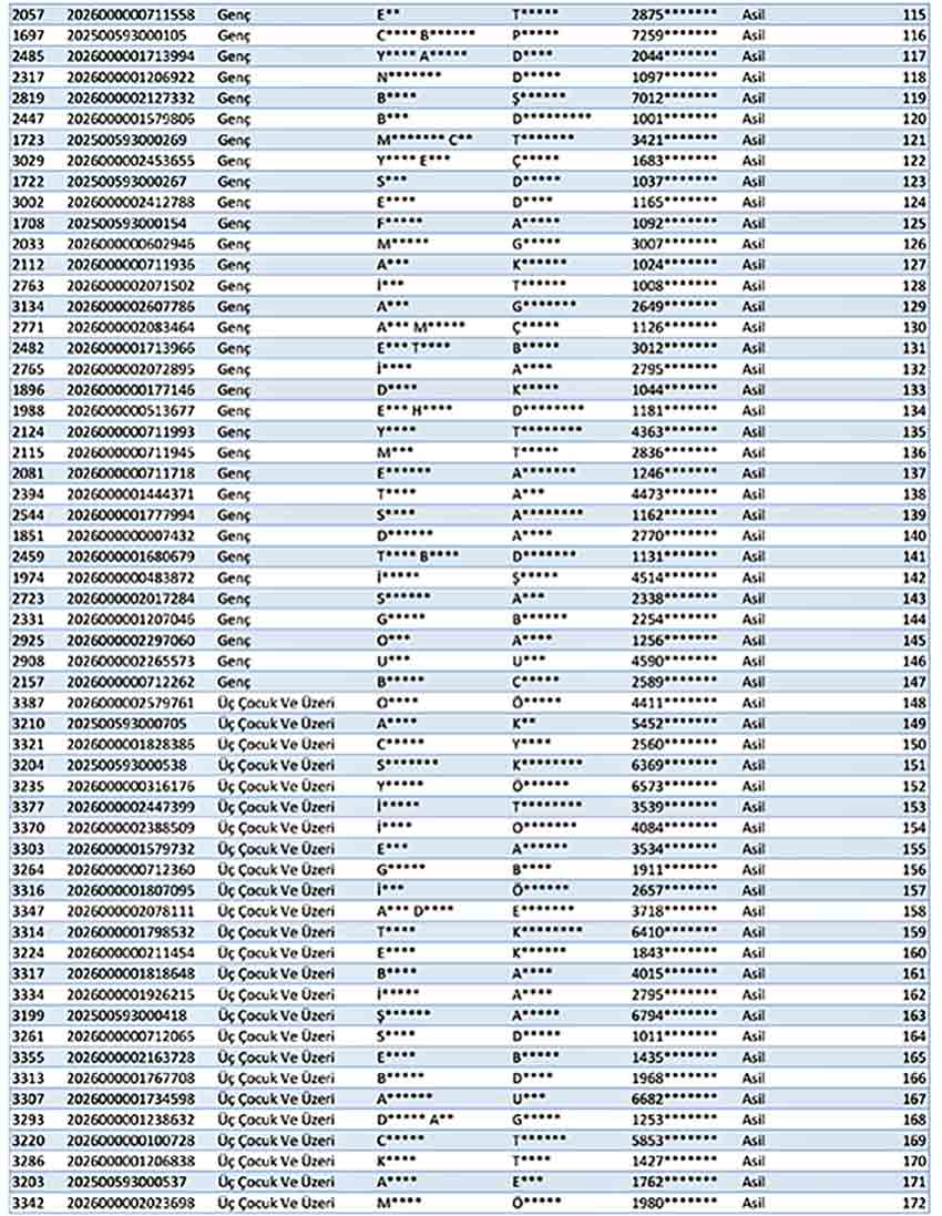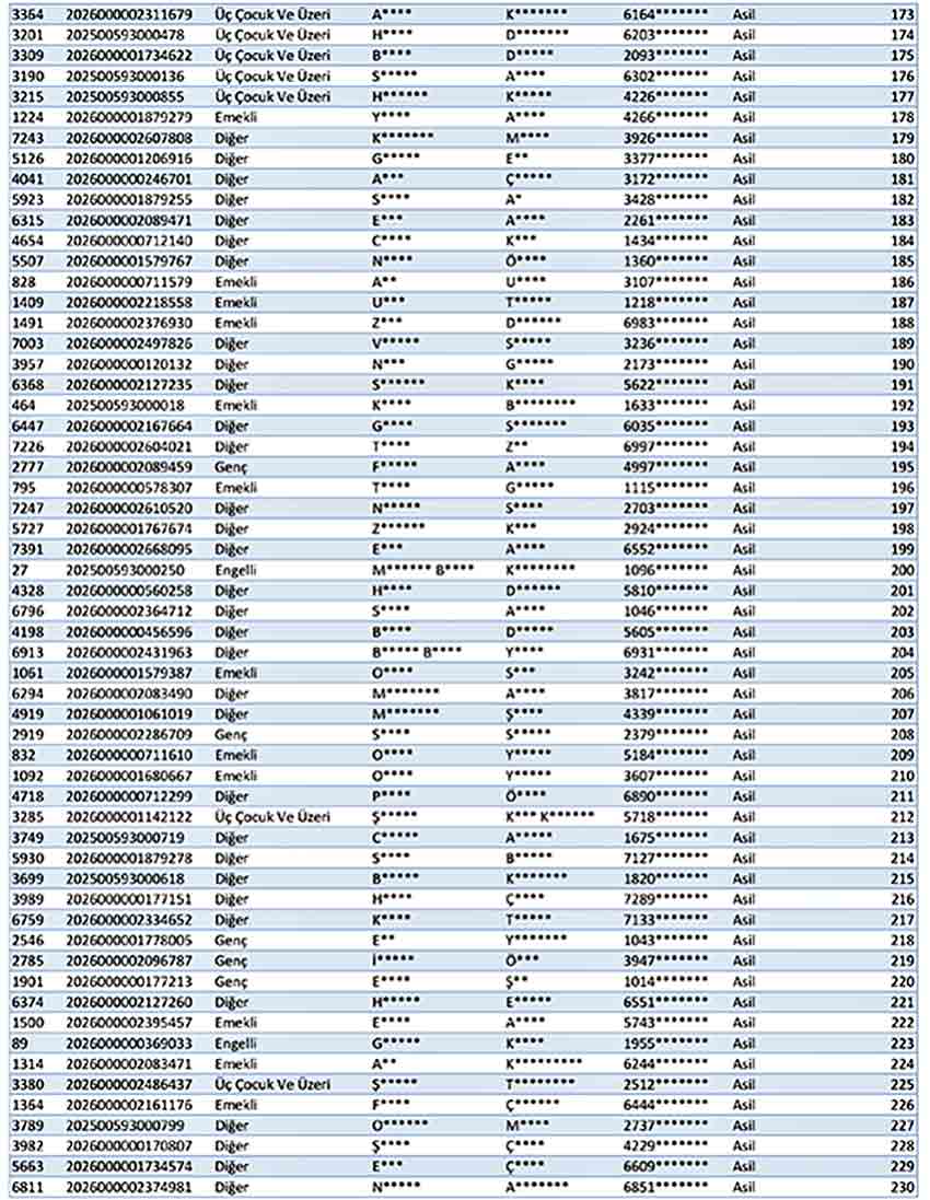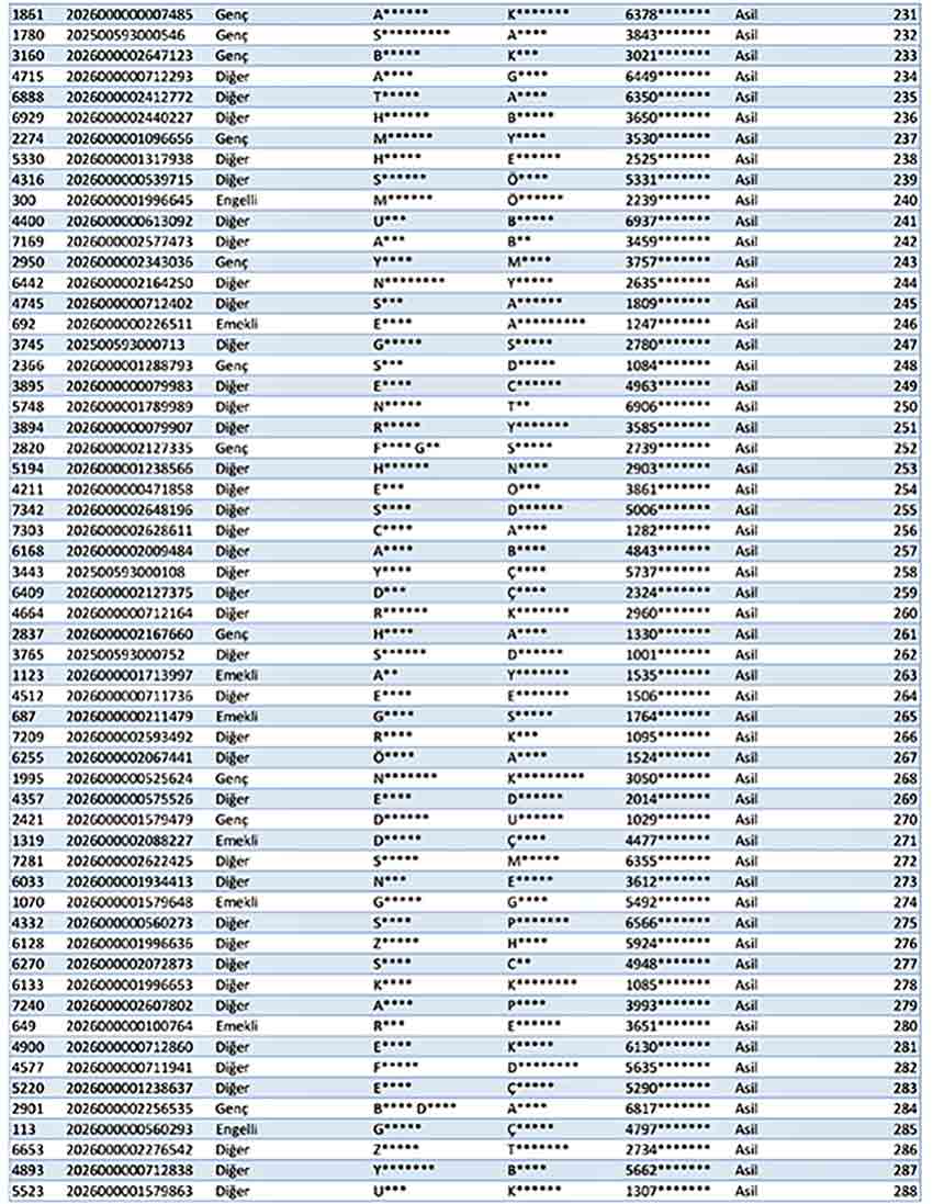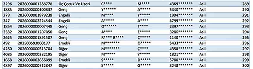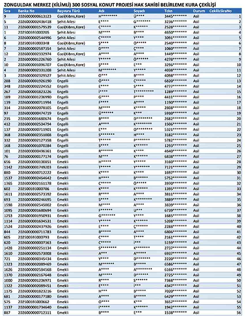 Gerçekleştirilen kura çekiminde ZONGULDAK MERKEZ KİLİMLİ İLÇESİ LİSTESİ