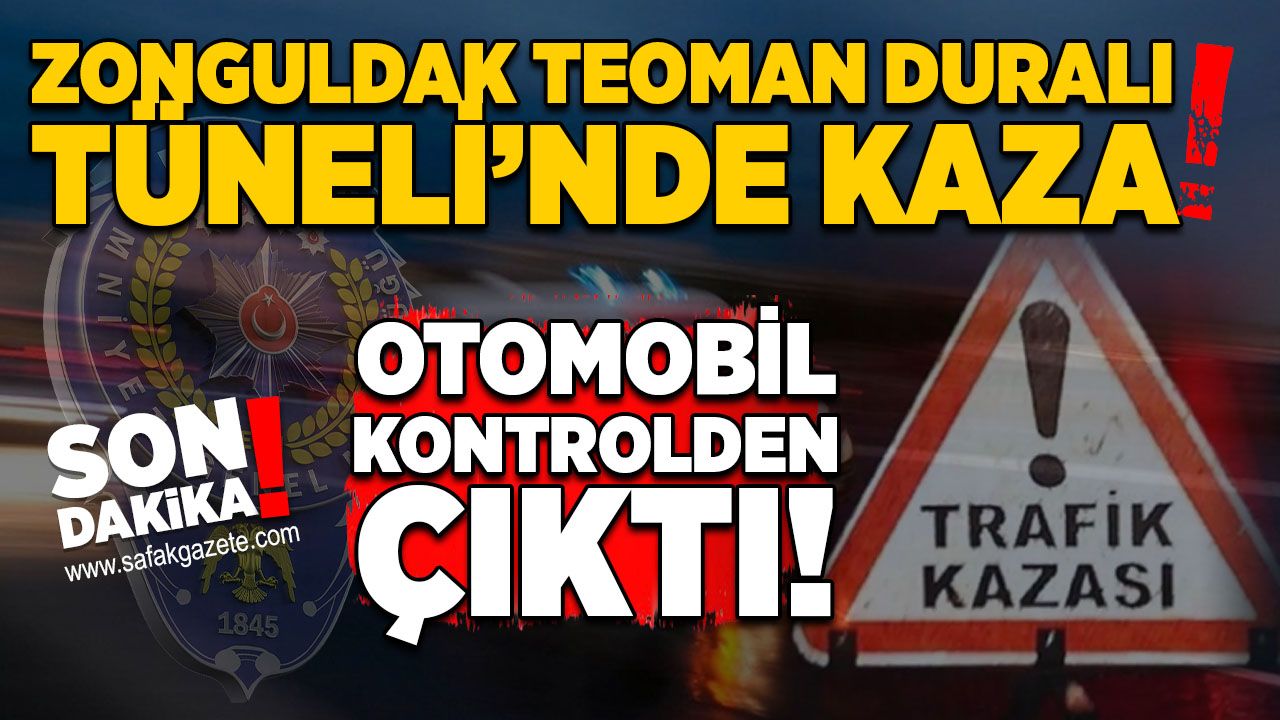 Zonguldak-Kilimli kara yolunda, Teoman Duralı Tünelleri mevkiinde bir otomobil sürücüsü henüz bilinmeyen nedenle direksiyon hakimiyetini kaybetti. Kontrolden çıkan araç, tünel içerisindeki diğer sürücülerde panik yarattı.