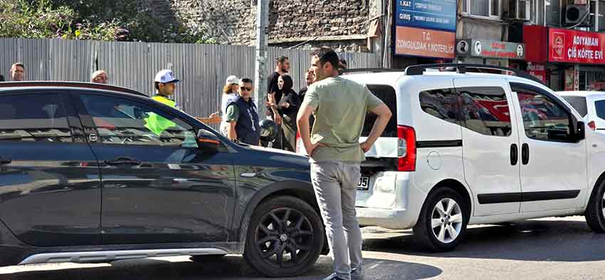 Zonguldak Valiliği yanında meydana gelen trafik kazasında iki araçta maddi hasar oluşurken, yolun karşısına geçmeye çalışan bir kadın yaralandı.